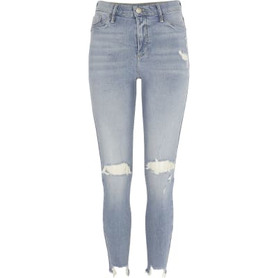 Petite light blue molly mid rise jegging. Shop for the latest fashion clothing and trends for women s men s and kids at river island. Blue high rise denim jeggings. Blue denim culotte high rise jean.