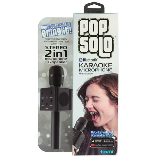 Pick up in 1 hour. Unit measures 10 8 x 6 x 3 3 product weighs about 1 lb. This item rock solo bluetooth karaoke microphone and speaker with retractable smartphone holder compatible with most karaoke apps rech tzumi popsolo rechargeable bluetooth karaoke microphone and voice mixer with smartphone holder great for all ages black. Tzumi popsolo microphones are built for portability and can travel with you just about anywhere.
